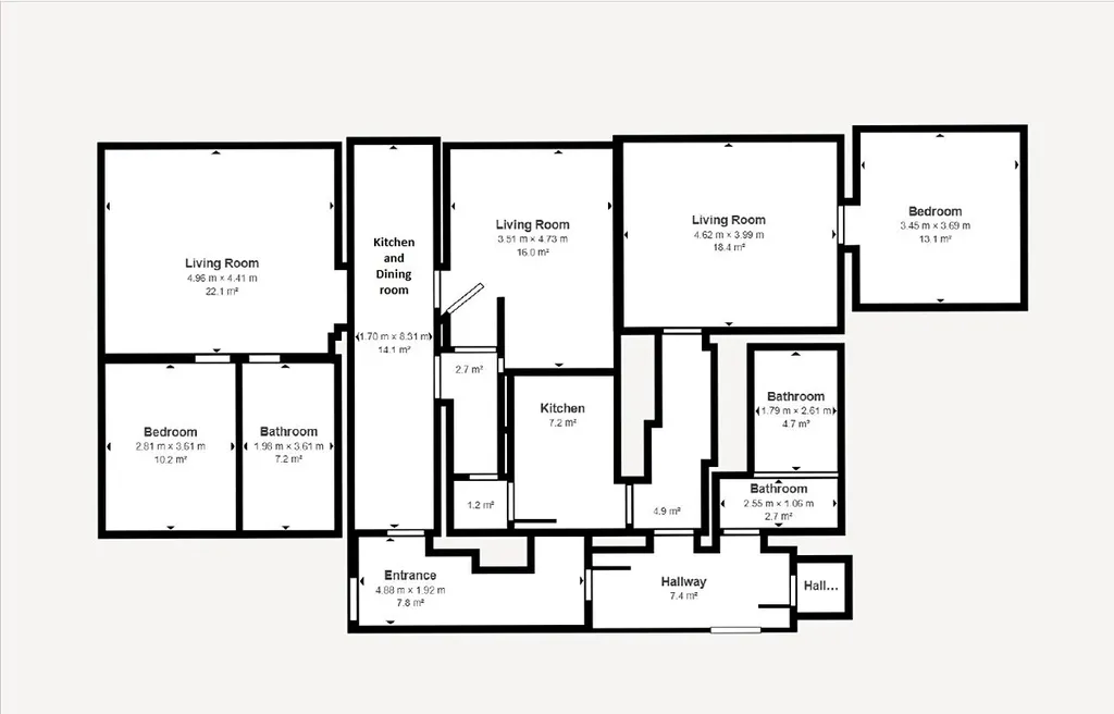 o Menší byt: Rekonstrukce v roce 2022, obsahuje vstupní chodbu, koupelnu, ložnici, obývací pokoj, kuchyni se spíží a přístup do sklepa.