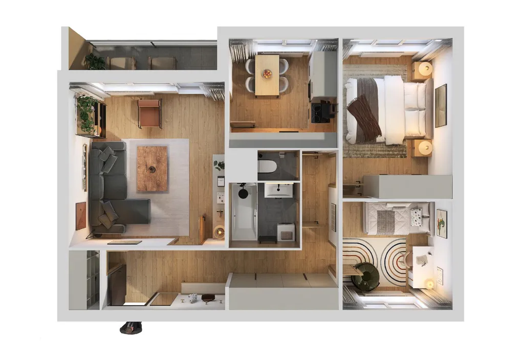 Rekonstrukce byla provedena s důrazem na kvalitu i celkový pocit z bydlení. Byt působí vzdušně, čistě a příjemně, přičemž si zachovává vysokou funkčnost pro každodenní život. Atmosféru podtrhují decentní podhledy s vestavěným osvětlením a pocit bezpečí zajišťují kvalitní vstupní dveře.