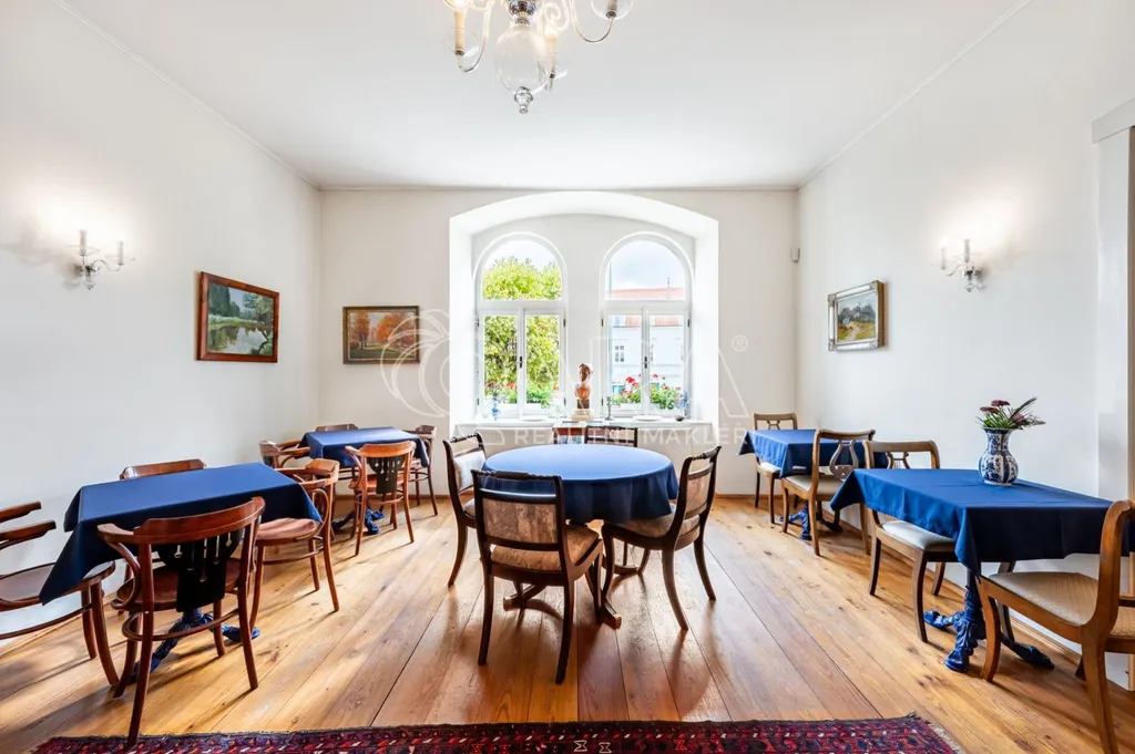 - Stylovou restauraci s kavárenským prostorem a salonkem