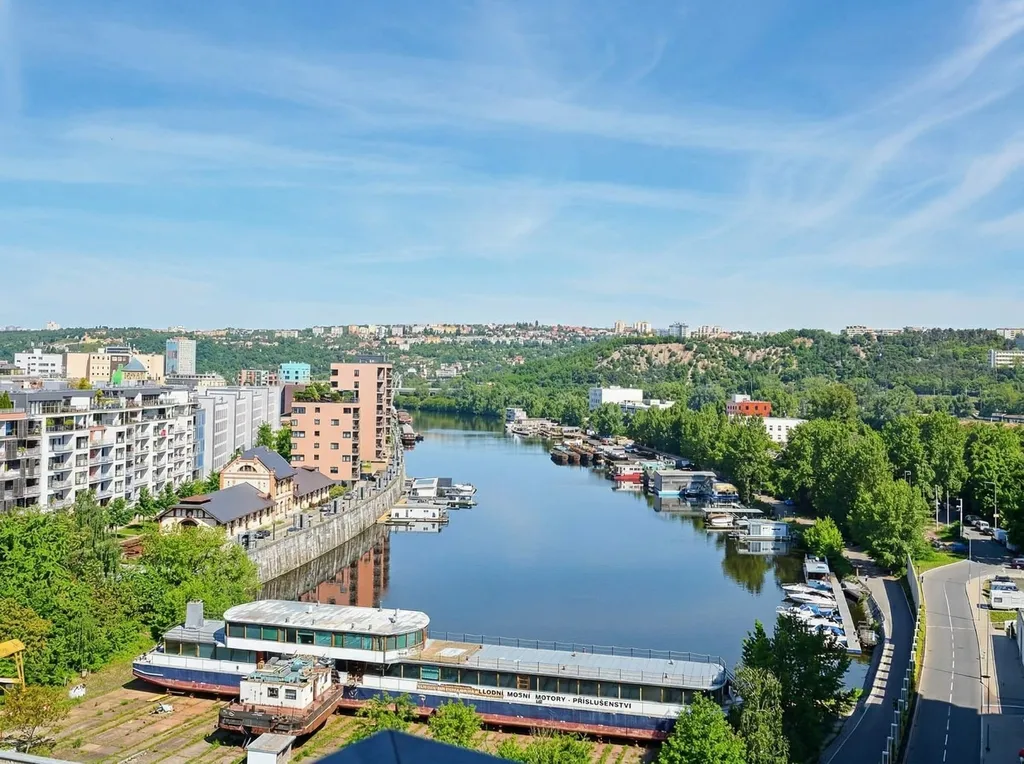 Součástí bytu je prostorná lodžie o výměře 12 m² s krásným výhledem na Vltavu a okolní panorama.