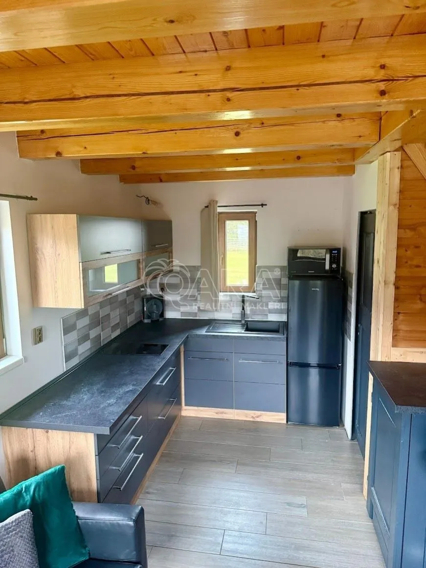 Na pozemku se nachází dřevostavba o zastavěné ploše 30 m a dispozici 2+kk, na níž je vyhotovena projektová dokumentace a vydáno platné stavební povolení pro její rozšíření na rodinný dům o celkové dispozici 4+1 s podkrovím a zastavěnou plochou 140 m.