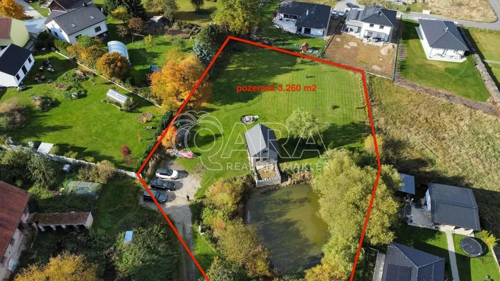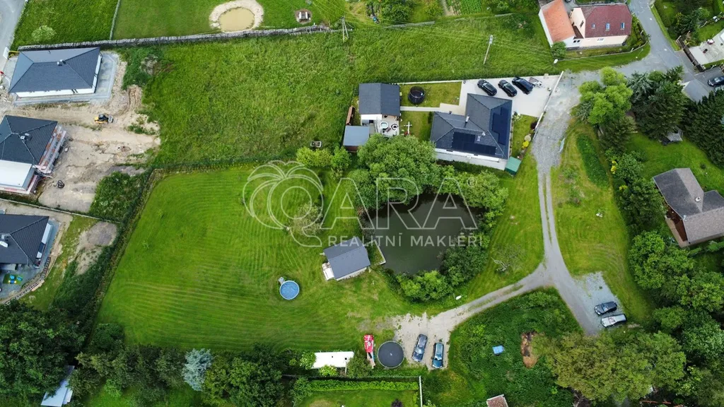 V územním plánu je pozemek vedený jako plocha smíšená obytná venkovská - plocha stabilizovaná, z inženýrských sítí je zaveden veřejný vodovodní řád, elektřina a veřejná kanalizace, připojení na plyn v příjezdové asfaltové komunikaci, která zajištuje přístup na pozemek. Součástí pozemku je také přírodní jezírko o rozloze 310 m, které přispívá k příjemnému prostředí a možnostem pro rekreační využití a dále podíl na příjezdové cestě, vyznačené na obrázku. Maximální podíl zastavění: Koeficient zastavění území max. 0,4 (poměr zastavěné plochy všech nadzemních částí stavby bez zpevněných ploch k výměře pozemku). Minimální podíl zeleně: 30% (podíl ploch zeleně, jako jsou travnaté plochy, zatravněné pobytové plochy, plochy užitkových a okrasných záhonů, k celkové ploše stavebního pozemku).