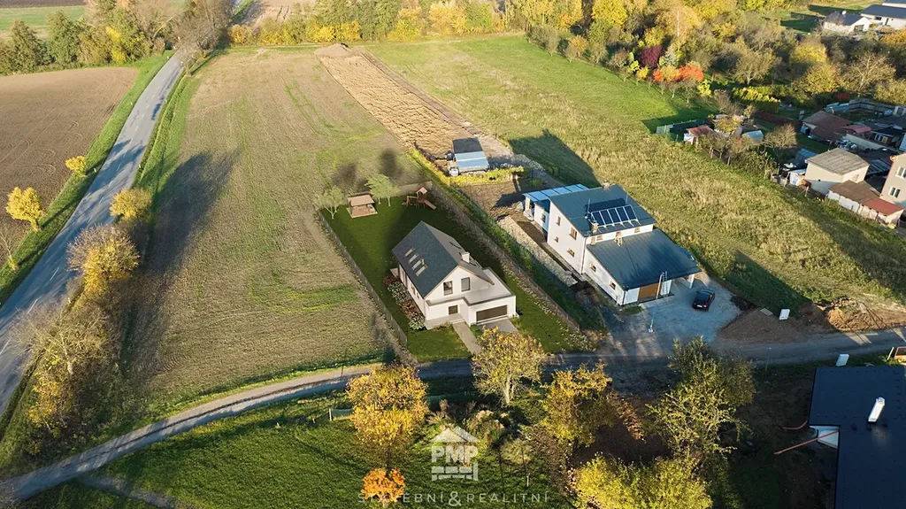 Pozemek je mírně svažitý a přístupný z obecní komunikace. Jeho rozloha činí 1.187 m² a dle platného územního plánu se celý nachází v zastavitelné ploše určené k bydlení. Koeficient zastavitelnosti je 50 % a na pozemku lze postavit jeden samostatný dům o maximálně dvou podlažích s podkrovím. Vzhledem k uliční šíři pozemku (29 metrů) se nabízí rovněž varianta výstavby dvojdomku. Výhodou je také orientace pozemku na jihozápad a severovýchod, což Vám během roku zajistí dostatek slunečního světla a tepelné energie.