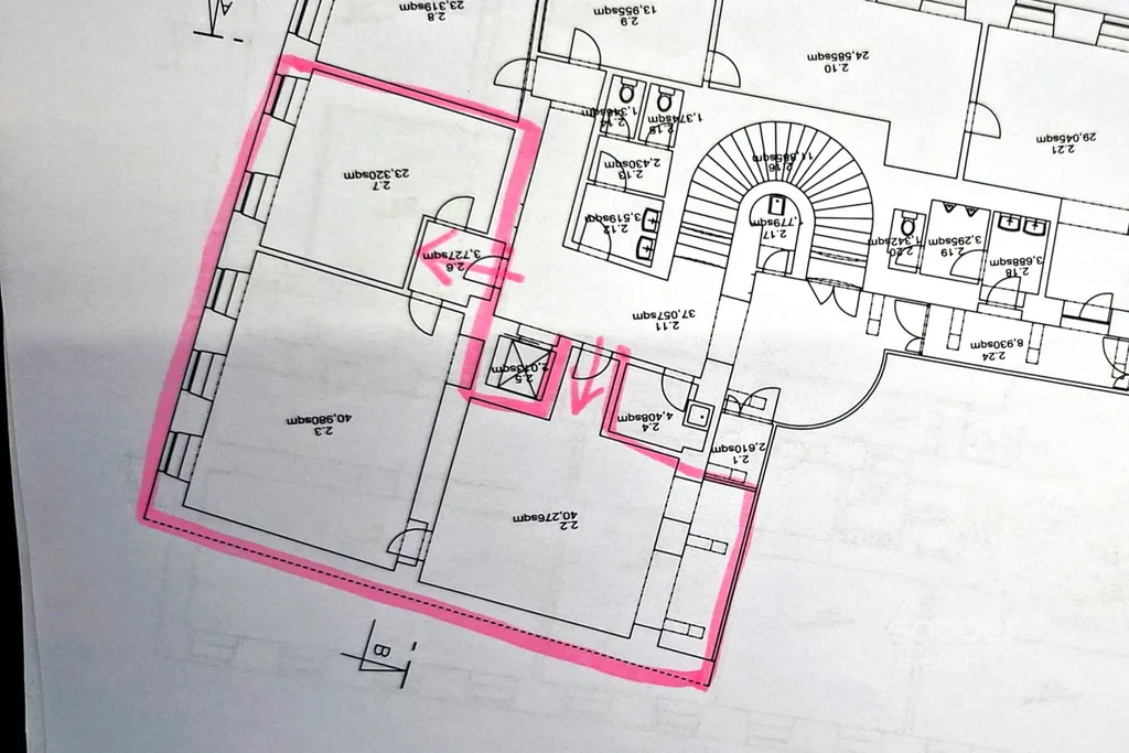 Celková plocha činí 108 m² a skládá se ze tří kanceláří v prvním patře. Jednotky o velikostech 68 m² a 40 m² je možné využívat jako jeden celek, nebo po dohodě samostatně.