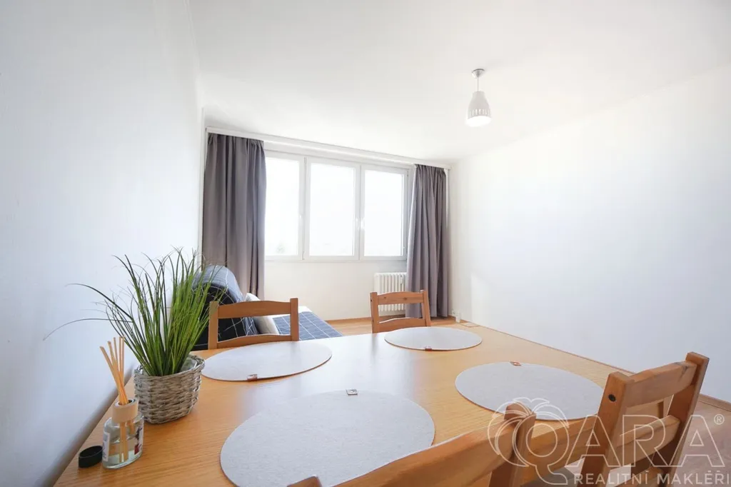 Dispozice bytu nabízí komfortní bydlení s dostatkem prostoru i úložných možností. Velkým benefitem je samostatná šatna, která výrazně zvyšuje praktičnost bytu. Byt se pronajímá částečně zařízený k dispozici je jídelní stůl se židlemi a postel (možnost včetně matrace).