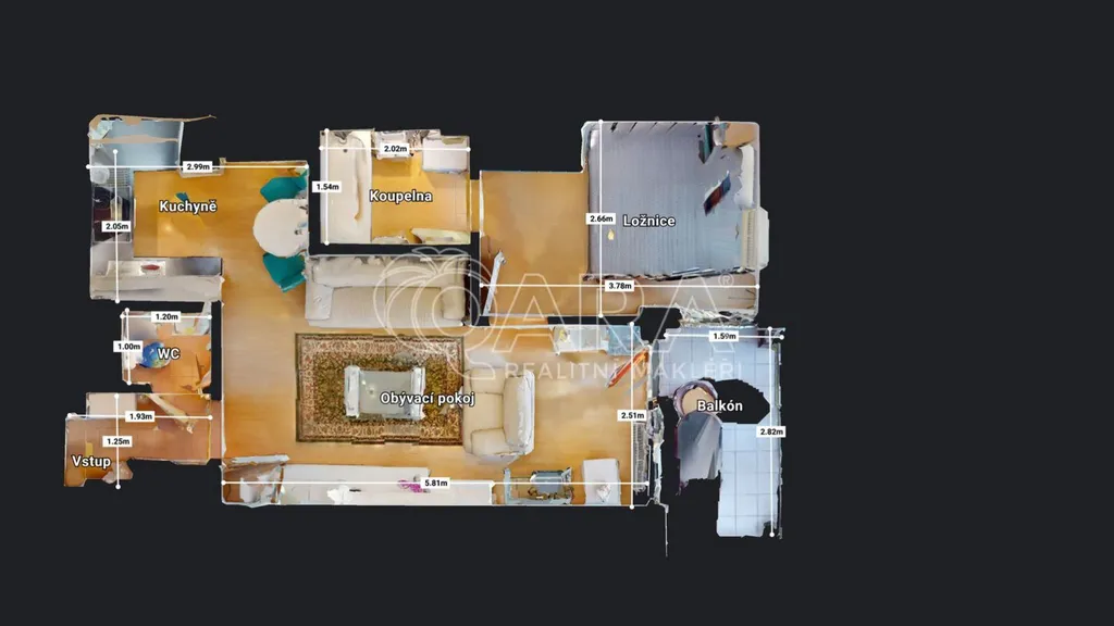 Velkou výhodou je lodžie o výměře 4,3 m2 a vlastní parkovací stání před domem.