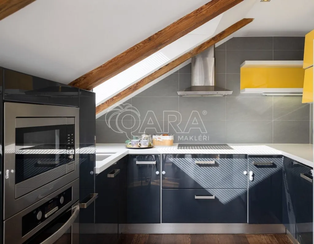 Zapomeňte na stereotypní podkrovní byty s nízkými stropy. Tohle je prostor, kde se můžete nadechnout. Na ploše 146 m se rozkládá byt, který v sobě snoubí moderní design a praktičnost. Díky výtahu, který vás doveze až do vaší předsíně pomocí čipu, si užijete maximální komfort a soukromí. Pro hosty je k dispozici video telefon a schodiště, které můžete využít pro dodatečný úložný prostor.