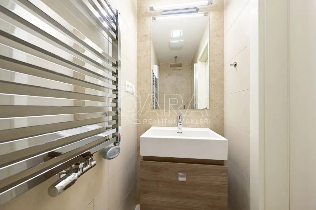 Dovolte mi představit Vám moderní, plně zařízený byt o dispozici 2+kk a rozloze 47,1 m, k němuž náleží parkovací stání v zakladači přímo v bytovém domě.