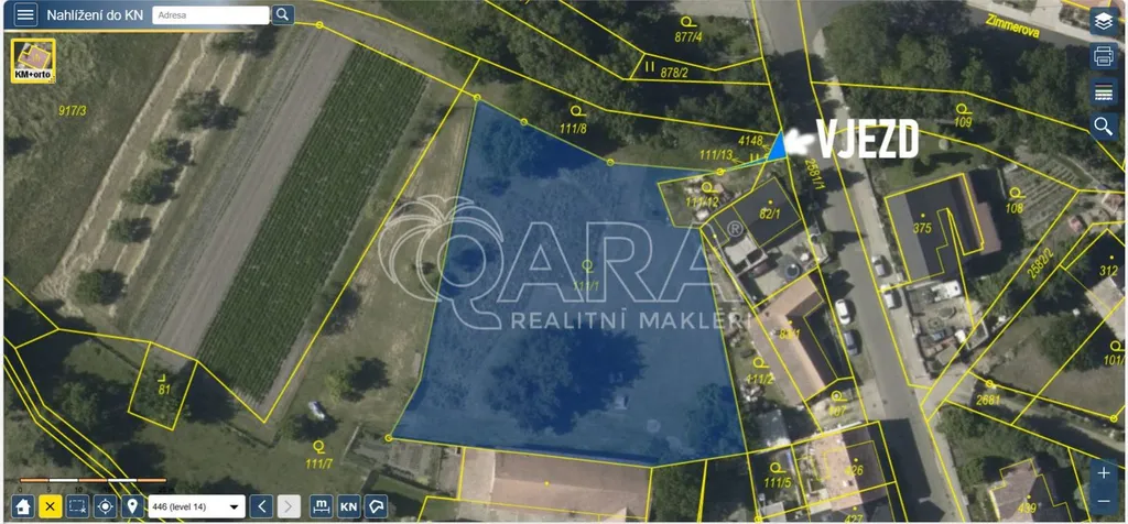 Podíl 1/4 na přístupové cestě parc. č. 111/8: výměra 380 m, který zajišťuje právní i fyzickou dostupnost k pozemkům.