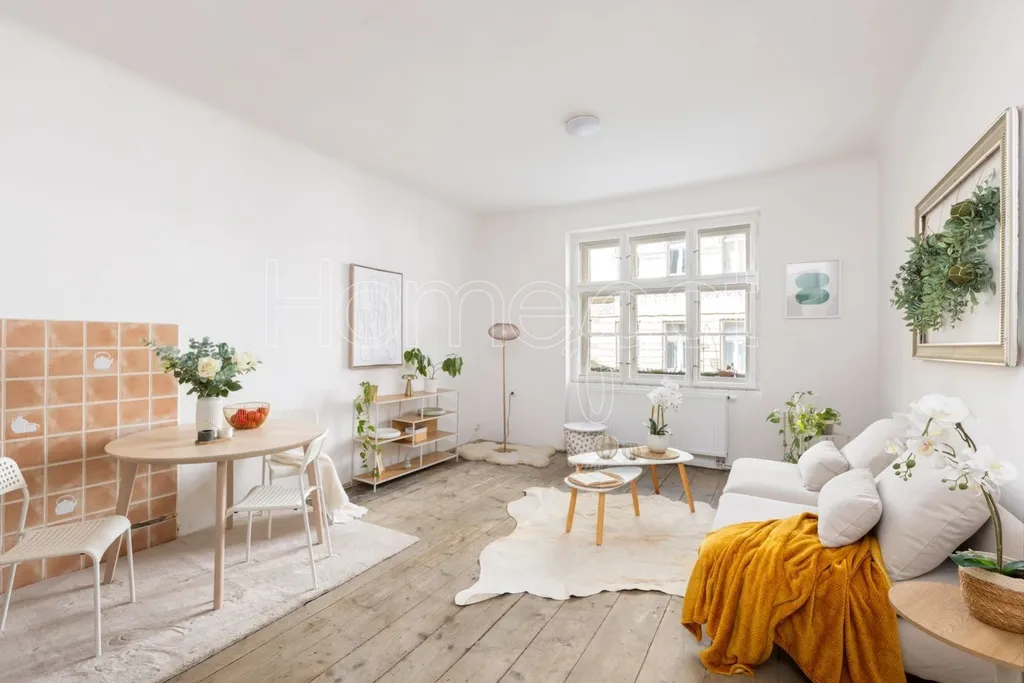 Tento velmi světlý byt, kde světlo během dne dělá svoji práci ráno je jiné než odpoledne se nachází ve 2. nadzemním podlaží historického činžovního domu v ulici Jirečkova, v jedné z nejživějších částí Prahy 7. Podlahová plocha činí 53,1 m.