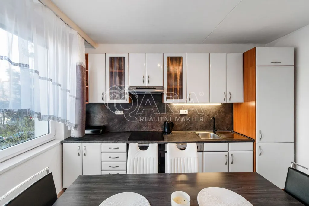 Samotný byt se nachází v 1. patře zatepleného panelového domu s výtahem a skvěle fungujícím SVJ. Dispozice bytu je velmi praktická z chodby se dostanete do všech místností. Obývací pokoj a kuchyně jsou separátní, obě ložnice jsou dostatečně prostorné a neprůchozí. Koupelna disponuje rohovou vanou, prostorem pro pračku, toaleta je oddělená. Jednotka je celkově ve velmi dobrém a udržovaném stavu. Navíc máte k dispozici i balkon, kde si v budoucnu můžete vychutnávat příjemné chvilky na vzduchu. K bytu náleží komora v chodbě na patře a dále sklepní kóje v suterénu domu.