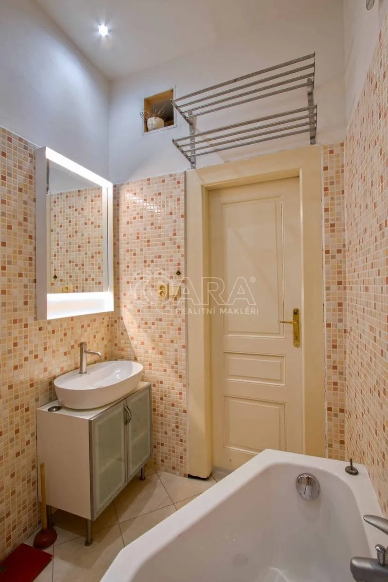 Nabízíme k pronájmu výjimečný byt o velikosti 44 m situovaný v pátém nadzemním podlaží secesního domu na rohu Kodaňské a Slovinské ulice. Objekt ve vinohradském stylu v sobě nese eleganci a atmosféru tradičních Vinohrad přestože se již nacházíte ve Vršovicích. Lokalita nabízí skvělou dostupnost centra MHD (u domu je zastávka autobusu, který jede na metro Náměstí Míru 5 minut) i blízkost zeleně, v docházkové vzdálenosti Heroldových a Havlíčkových sadů.
