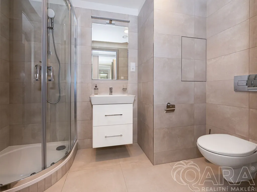 Byt je dispozičně řešen vstupní chodbou s vestavěnou šatní skříní, koupelnou s toaletou, sprchovým koutem, a dále obytnou místností s kuchyňskou linkou a vstupem na lodžii. Byt je orientován mimo rušnou silnici a tramvajovou trať, což zajišťuje klidné bydlení i příjemný výhled do vnitrobloku. Součástí vybavení je kuchyňská linka s jídelním stolem, velká vestavěná skříň, robotický vysavač a modem pro připojení k internetu. K bytu náleží také sklepní kóje v suterénu domu. Byt se vyznačuje velmi nízkými provozními náklady, energetická náročnost budovy je třídy B a je vybaven rekuperační jednotkou. Zúčtovatelné zálohy činí 2.500,-Kč měsíčně, plus elektřina a do budoucna fond oprav.