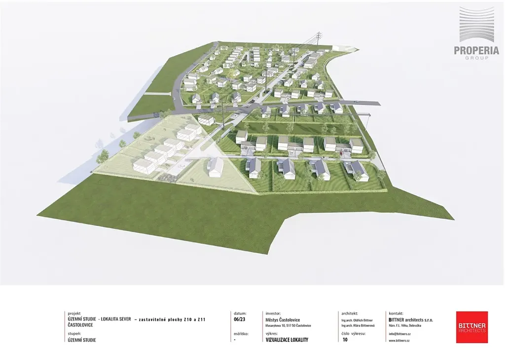 Prodej pozemku k budoucí výstavbě o CP 1053 m2. Pozemek p.č. 786/ 64 se nachází v obci Častolovice u Rychnova nad Kněžnou. V rámci projektu od architektů Bittnerových je navržena podrobná uzemní studie lokality sever - zastavitelné plochy Z11 a Z10 navazující na současnou zastavěnou část obce. Po plánované přeparcelaci vzniknou nově umístěné a tvarované plochy k výstavbě rodinných domů s veškerou infrastrukturou. Celý projekt ráda pošlu mailem. Koupě pozemku je nyní vhodná především jako investice do budoucna, jelikož po realizaci rapidně vzroste tržní cena. Městys se nachází v krásné krajině s rybníky a veškerou dostupností služeb a dopravní sítí do okolí. Více informací přehledně zjistíte z fotek.