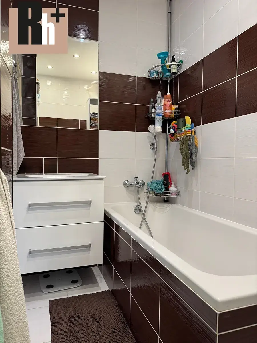 Součástí bytu je nová kuchyňská linka včetně spotřebičů. Koupelna s vanou, umyvadlem i s dostatkem místa pro pračku a sušičku. V koupelně i na WC jsou sádrokartonové podhledy s bodovým osvětlením, které dodávají prostoru moderní vzhled. Vstup do obou pokojů je samostatný. V ložnici (aktuálně využívané jako dětský pokoj) je prakticky vybudovaná šatna, která poskytuje úžasný úložný prostor. V chodbě jsou vestavěné skříně. Z lodžie o výměře cca 4,5 m² je výhled na dětské hříště a zeleň.