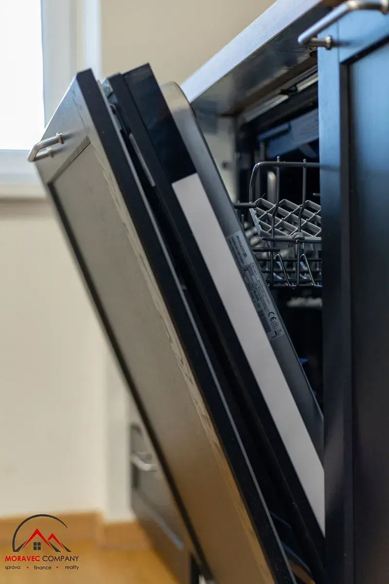 Byt je plně vybaven – nechybí nábytek, spotřebiče, nádobí, ložní prádlo ani ručníky. Stačí si jen přinést osobní věci a můžete bydlet!