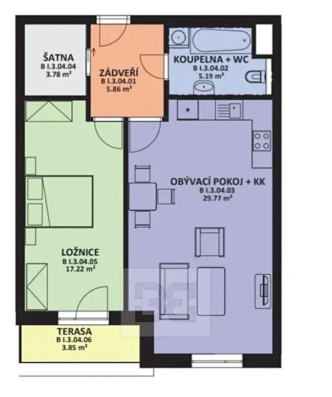 K bytu náleží terasa o velikosti 3,85 m² průchozí z ložnice.