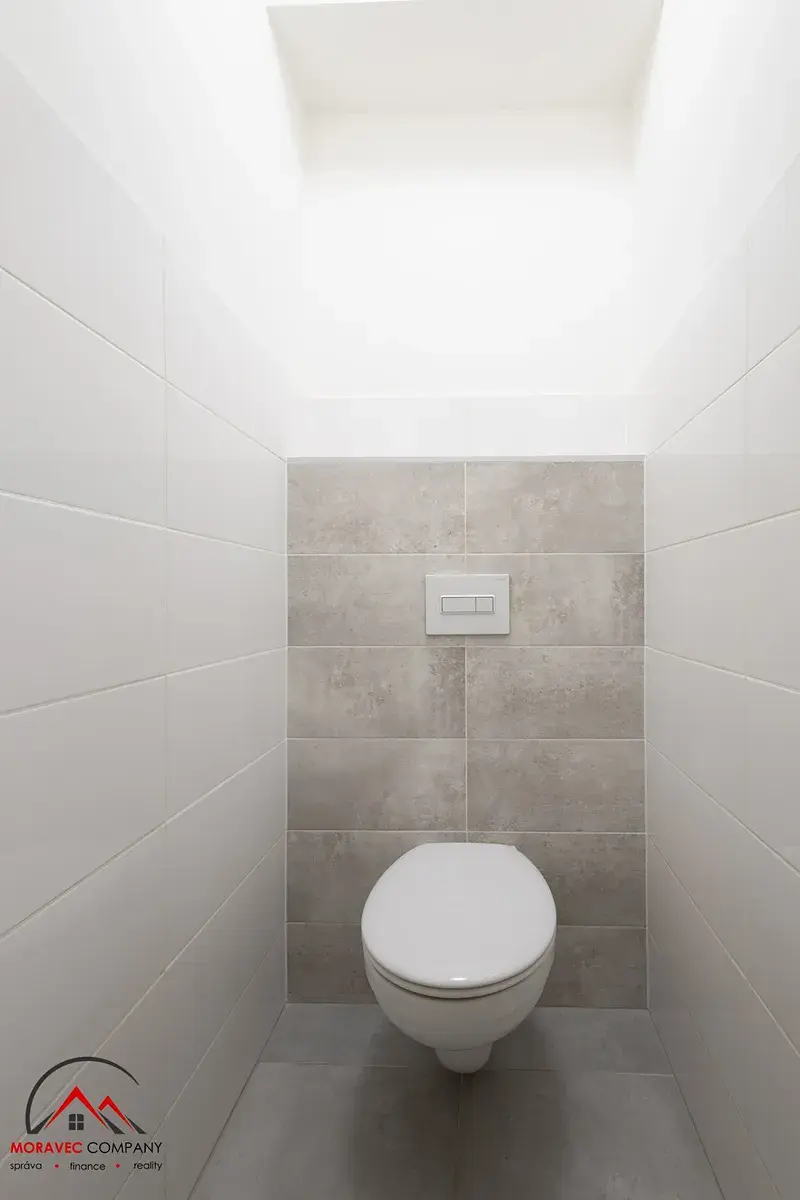 Vybavení bytu zahrnuje kuchyň s elektrickou troubou, myčku, indukční varnou deskou a digestoř. Koupelna je vybavena sprchovým koutem, WC je samostatné.
