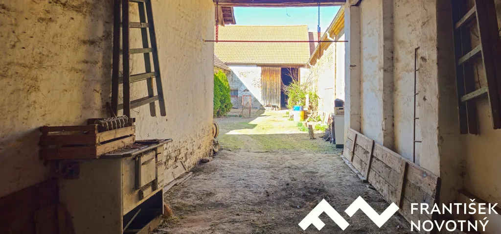 Uzavřený dvůr s průjezdem zajišťuje klid a soukromí. Součástí domu jsou hospodářské budovy s těmito místnostmi: garáž, dílna, černá kuchyně, chlívy, podzemní sklep a velká stodola s novou střechou – perfektní na parkování aut, hobby, nebo přestavbu k modernějšímu využití.
