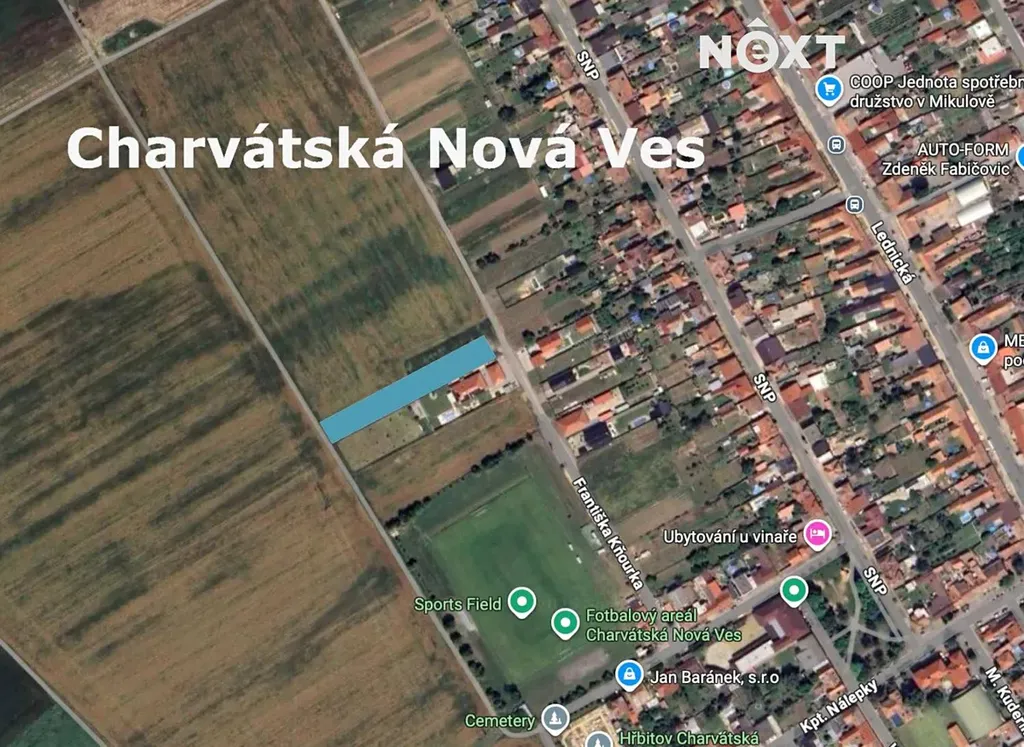 Exkluzivně nabízíme k prodeji pozemek s plochou 1.840 m2 určený k budoucí výstavbě rodinného domu v Břeclavi, místní části Charvátská Nová Ves. Parcela obdélníkového tvaru s délkou 123 m šířkou 15 m je součástí nově budované ulice Františka Kňourka, která nyní podélně kopíruje areál fotbalového hřiště a pokračuje směrem k Lednici.