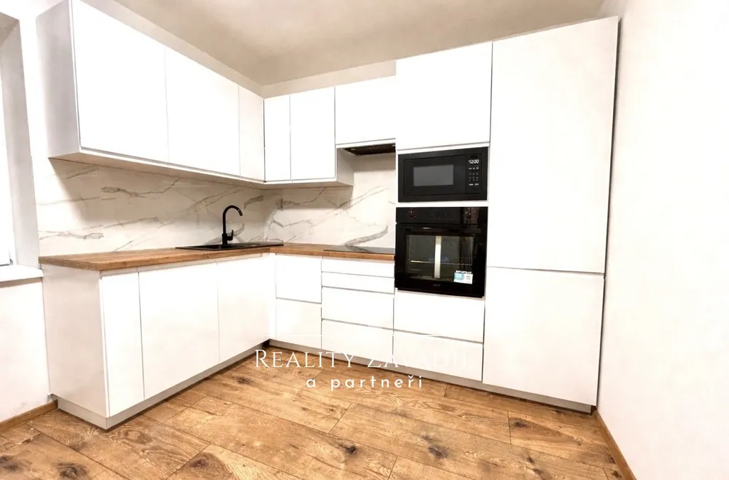 Součástí je nová kuchyňská linka včetně vestavěných spotřebičů: