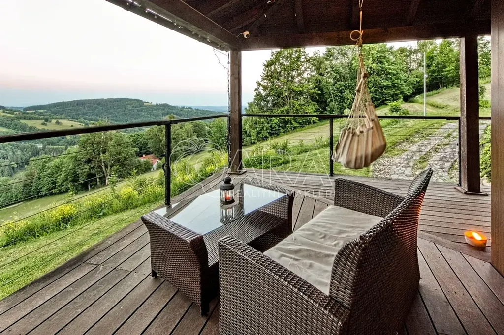 Nabízíme ke koupi exkluzivní horskou rezidenci ve vyhledávané lokalitě Vrchlabí, přímo mezi skiareály Bubákov a Herlíkovice. Dům o dispozici 7+kk je doplněn o samostatný apartmán 2+1 a nabízí celkovou užitnou plochu 568 m. Nachází se na prostorném pozemku o rozloze 4 087 m a je nabízen kompletně vybavený, připravený k okamžitému užívání. Co na této nemovitosti oceníte nejvíce je naprosté soukromí, klid a nádherné výhledy.