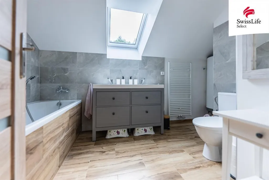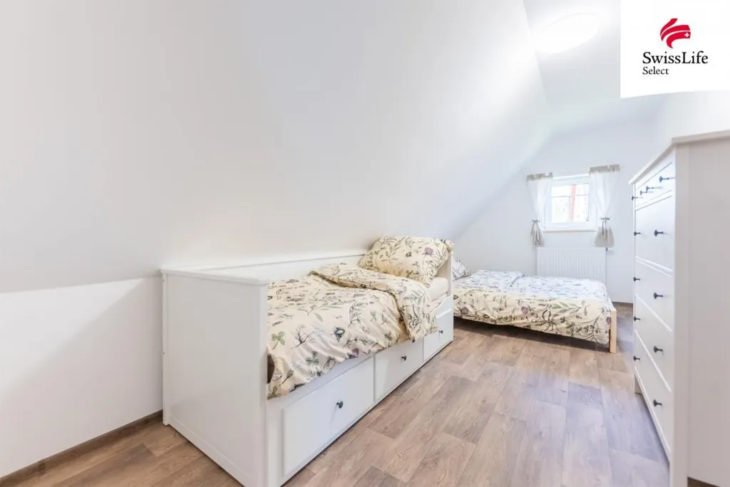 Horní patro: 4 samostatné pokoje, koupelna s vanou a WC, další samostatné WC
