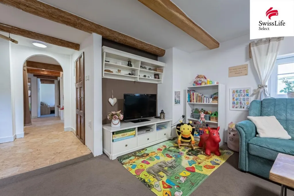 Přízemí: 2 pokoje, herna, prostorná společenská místnost, kuchyň, koupelna se sprchovým koutem
