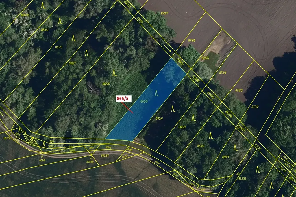 Lesní pozemky o výměře 968 m2, parcelní číslo 865/5, podíl 1/1, katastrální území Přísnotice, obec Přísnotice, obec s rozšířenou působností Židlochovice, okres Brno-venkov, Jihomoravský kraj.