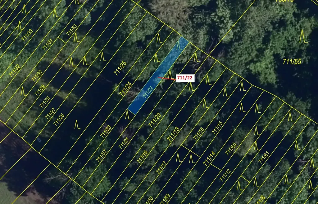 Lesní pozemek o výměře 89 m2, parcelní číslo 711/22, podíl 1/1, katastrální území Přísnotice, obec Přísnotice, obec s rozšířenou působností Židlochovice, okres Brno-venkov, Jihomoravský kraj.