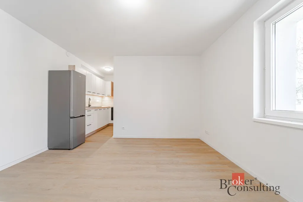 Dispozice bytu je prakticky řešená – prostorný obývací pokoj s kuchyňským koutem tvoří hlavní obytnou zónu. Kuchyň má novou kuchyňskou linku včetně spotřebičů: indukční varnou desku, elektrickou troubu a digestoř. Koupelna nabízí prostorný sprchový kout a toaletu. Byt doplňuje vstupní chodba. V suterénu domu na vás čeká sklep o výměře 8,9 m², který ocení každý, kdo potřebuje extra úložný prostor.