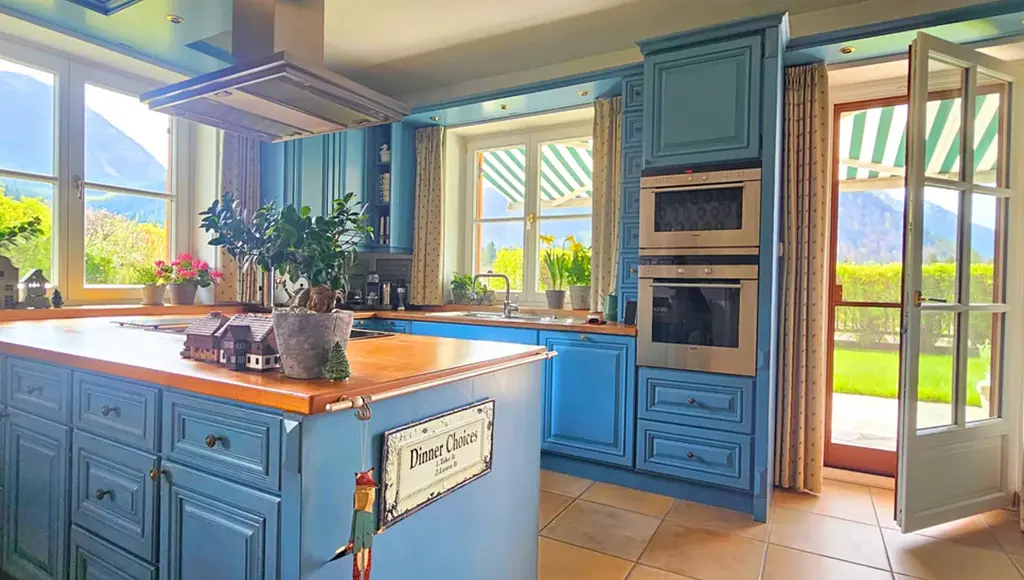 Interiér stojí na kvalitních materiálech a poctivém řemesle. Masivní kuchyně vyrobená na míru, ručně zpracované detaily, kované prvky, galerie s dřevěnými trámy i velká panoramatická okna vytvářejí hřejivou atmosféru s nádechem elegance. Dvě designové koupelny, prostorné ložnice s balkony, vestavěné šatny a dvojgaráž zajišťují praktické zázemí pro pohodlné každodenní bydlení.