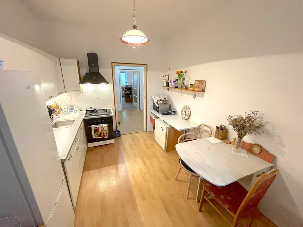 Pronájem bytu o dispozici větší 1+1 s balkonem na ulici Mezírka, Brno - Veveří. Celková plocha bytu činí 50m a nachází se v 2. patře cihlové budovy s výtahem. Byt je zařízen zánovní kuchyňskou linkou s vestavnou troubou a plynovými hořáky, digestoří, lednicí, pračkou a šatní skříní v předsíni, dále nevybaveno. Z prostorné kuchyně vstup na balkon, který je orientován do volného prostoru do zahrad. V koupelně vana a pračka, toaleta je odděleně se vstupem z předsíně, okna plastová, na podlahách dlažba, PVC a parkety. Cena pronájmu činí 15.900,- Kč + zálohy na služby 2.000,- Kč + elektřina a plyn (cca 1.000,-Kč). Celkem tedy 18.900,- Kč (dle počtu osob). Vhodné pro jednotlivce či pár. Volné od 1.6.2026. V případě zájmu o prohlídku či dotazů kontaktujte telefonicky nebo do emailu uvádějte prosím telefon (snadnější komunikace). Na dotazy bez telefonu nebude odpovězeno.