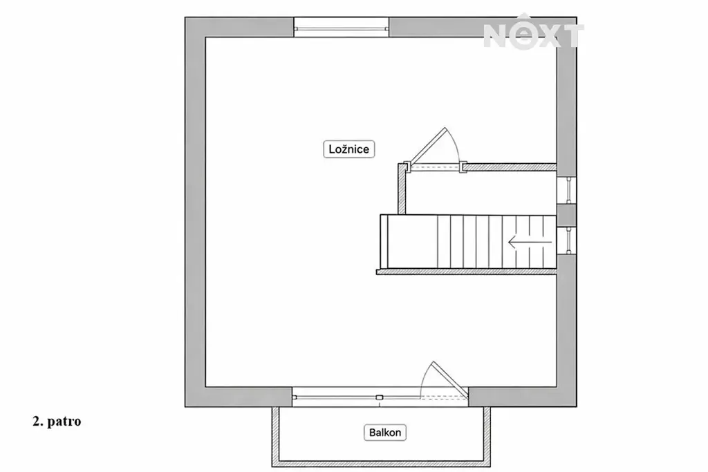 Ve druhém patře je prostorná ložnice s balkonem, kterou lze případně rozdělit na dvě části – ideální pro rodinu nebo návštěvy. Nechybí ani praktická půda pro uložení sezónních věcí.