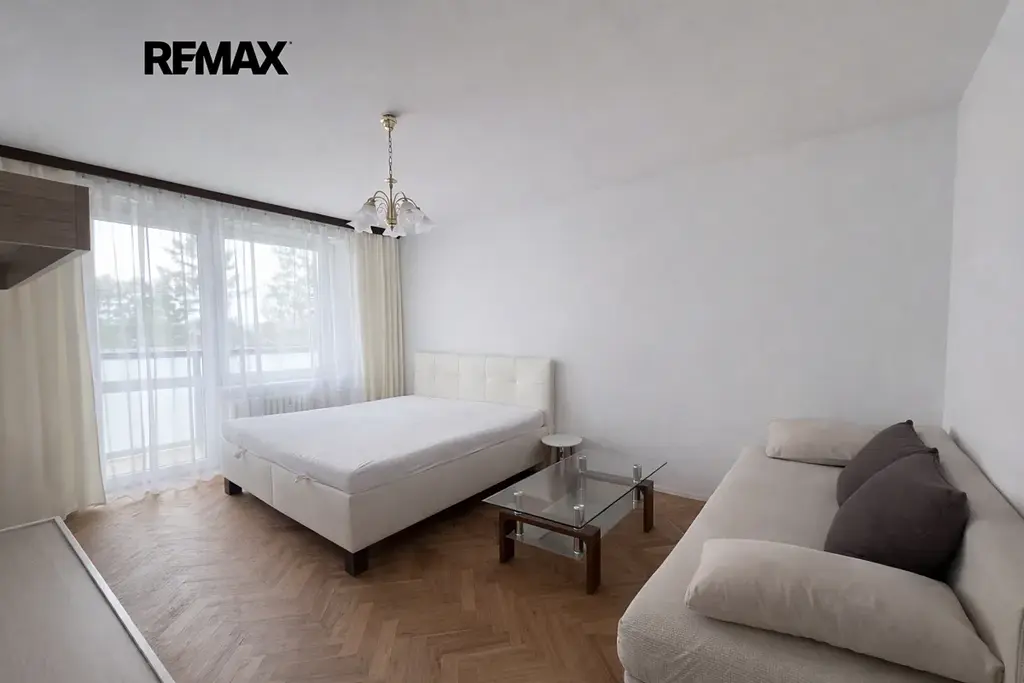 Byt je částečně zařízený – součástí je postel, gauč, posezení na balkoně a základní spotřebiče (pračka, lednička a myčka). Rekonstrukce proběhla v roce 2022.