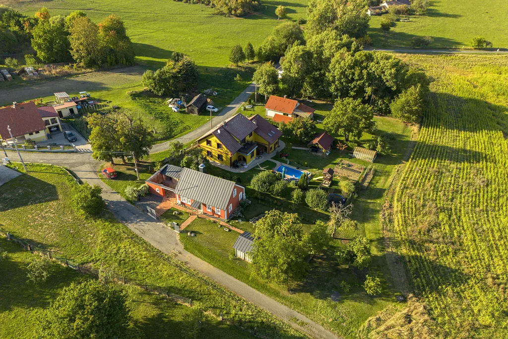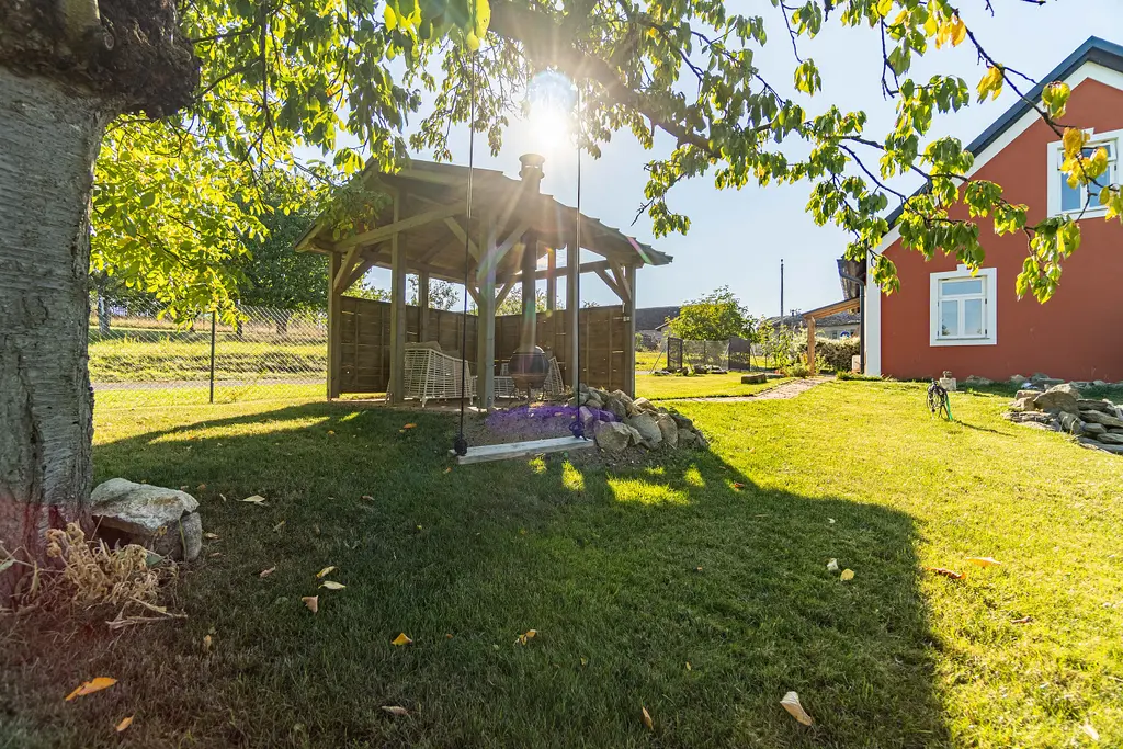 Dům obklopuje krásná zahrada s jezírkem a altánem k posezení a grilování. Celková výměra pozemku je 536 m². Při krásném východu slunce si vychutnáte nádherné výhledy do okolí, které jsou nezapomenutelné. Nemovitost je vhodná i ke klidné rekreaci.