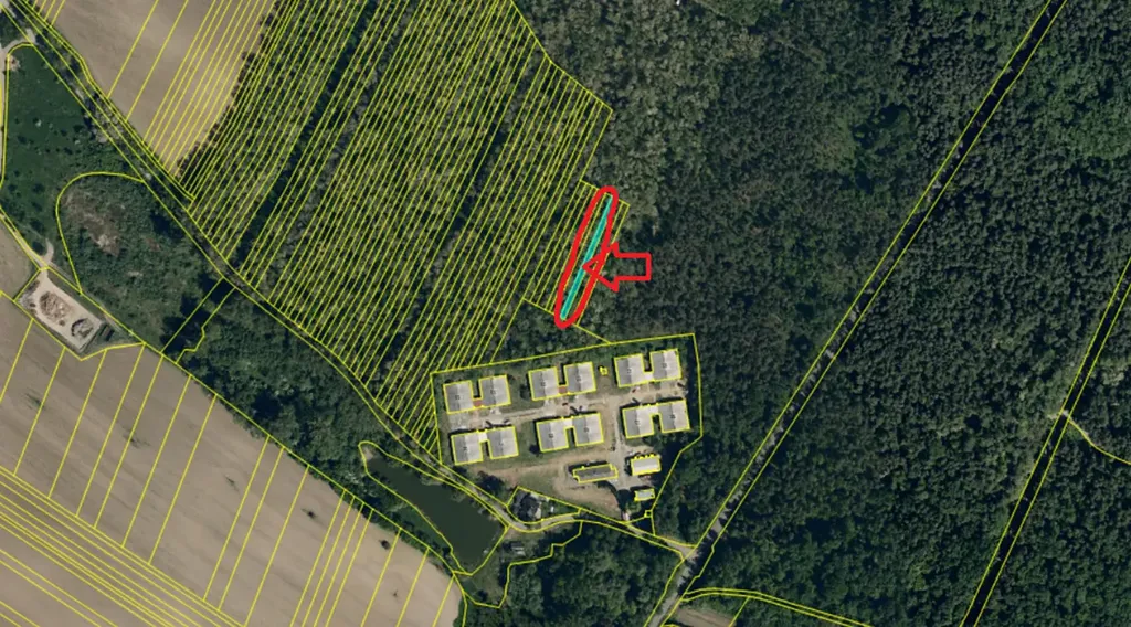 - p.č. 13763 vedená jako lesní pozemek o celkové výměře 488 m2, z toho vlastníme podíl 1/4 tedy 122 m2 (stáří lesa 75 let - zastoupení dřevin akát),