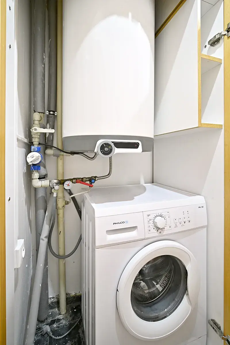 Kuchyně je vybavena linkou s elektrickým sporákem, troubou, digestoří, lednicí s mrazákem a stolem se židlemi. Na chodbě jsou vestavné skříně, kde je v jedné z nich umístěn elektrický bojler k ohřevu teplé vody a pračka. V dětském pokoji je pak zánovní postel bez matrace plus dvě skříňky, což lze vystěhovat. V prostorném sklepě je navíc dostatek polic k uložení všeho potřebného.