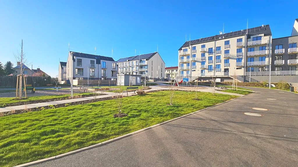 Velkou výhodou je příjemné a klidné okolí. Okna bytu jsou situována na východ do ulice bez provozu. Přímo u domu se nachází dětské hřiště, což ocení zejména rodiny s dětmi. V docházkové vzdálenosti do 15 minut je kompletní občanská vybavenost, včetně obchodů, lékařů, pošty, úřadů, školy, školky i vlakového nádraží. Praha je vlakem dostupná do 35 min.