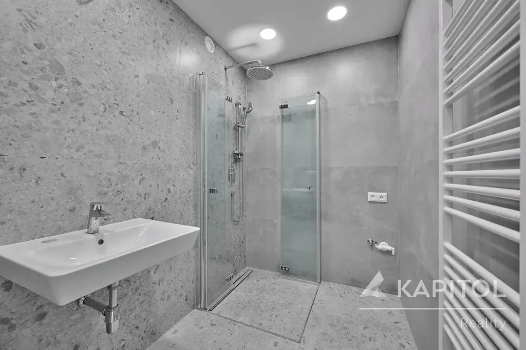 - koupelna se sprchovým koutem, umyvadlem a přípravou na pračku 2,9 m²