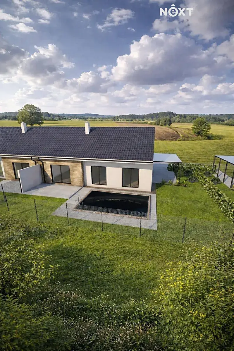 Exkluzivně Vám nabízíme ke koupi novostavbu rodinného domu o dispozici 4kk se zahradou a terasou v klidné části městysu Drnholec. Jedná se o rohový, řadový cihlový, nízkoenergetický dům, který je součástí projektu „NA VÝSLUNÍ“ nové výstavby sedmi rodinných domů. Jedná se o krásné bydlení v kraji pod Pálavou, v místě bohaté kultury a vinařské tradice. Jde o atraktivní a bezpečné bydlení splňující nejmodernější současné trendy. V přízemí je k dispozici zádveří (5,03 m2), WC (1,60 m2), koupelna (6,24 m2), pokoj (12,39 m2), komora (3,10 m2), pokoj (12,66 m2), ložnice (12,76 m2), chodba (5,81 m2), obývací pokoj s kuchyňským koutem (30,88 m2), technická místnost (3,47 m2). Užitná plocha domu cca 93,94 m2. Celková plocha parcely je cca 381 m2. Dům bude napojen na elektřinu, vodovod, kanalizaci a tepelné čerpadlo. Součástí pozemku je retenční nádrž. Parkování je řešeno na vlastním pozemku. Dům bude nabízen bez kuchyňské linky a vestavěných skříní. V ceně je oplocení a pergola. Dle průkazu energetické náročnosti je nemovitost vedena ve třídě B. Pouze u nás vám zajistíme moderní financování až na 30 let, bez ohledu na věk a prokazování příjmů, či nutnosti předkládat daňové přiznání (u podnikatelů). Zeptejte se nás a bydlete chytře! Při osobní prohlídce nejlépe posoudíte, zda je tento dům vhodný právě pro Vaše nové bydlení. Pro více informací nebo sjednání prohlídky kontaktujte realitního makléře. Pro komunikaci uvádějte evidenční číslo zakázky N117351.
