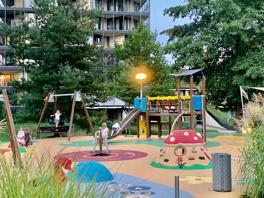 Součástí projektu je rozsáhlý soukromý park přístupný výhradně obyvatelům rezidence. Tento zelený vnitroblok nabízí klidné prostředí, dostatek soukromí a prostor pro odpočinek, sport i každodenní relaxaci – což je v rámci Prahy zcela výjimečné.