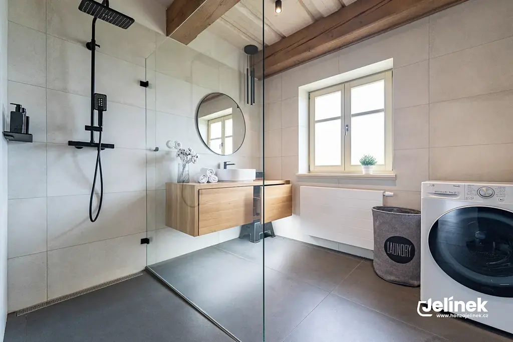 - Vytápění: Bezstarostný elektrokotel kombinovaný s kachlovými kamny s výměníkem.