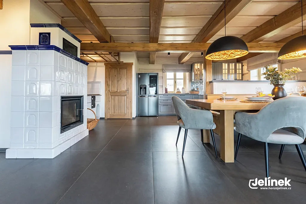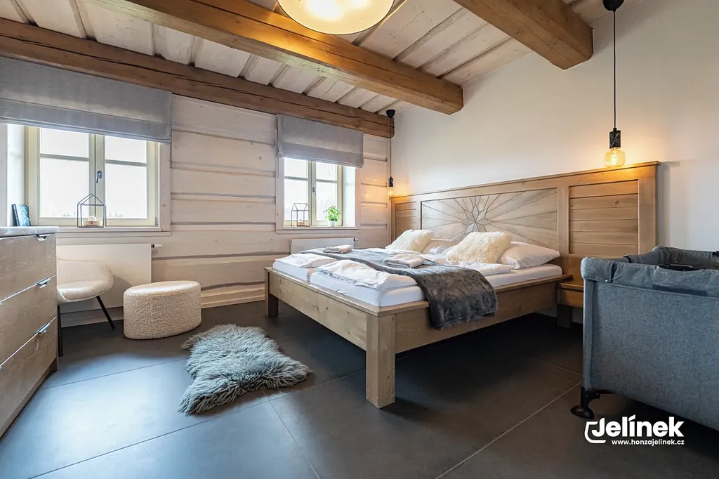 Díky platné stavební uzávěře v širokém okolí nabízí místo to nejcennější – naprosté ticho, klid a noční oblohu bez světelného smogu. Hosté i vy oceníte přírodní koupací bio jezírko s terasou, obrovskou světnici s na zakázku vyrobenou masivní kuchyní a kachlovými kamny s pecí, která tvoří srdce celé roubenky.