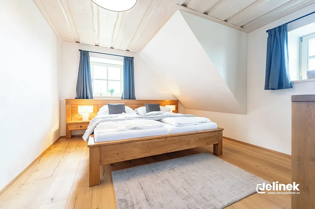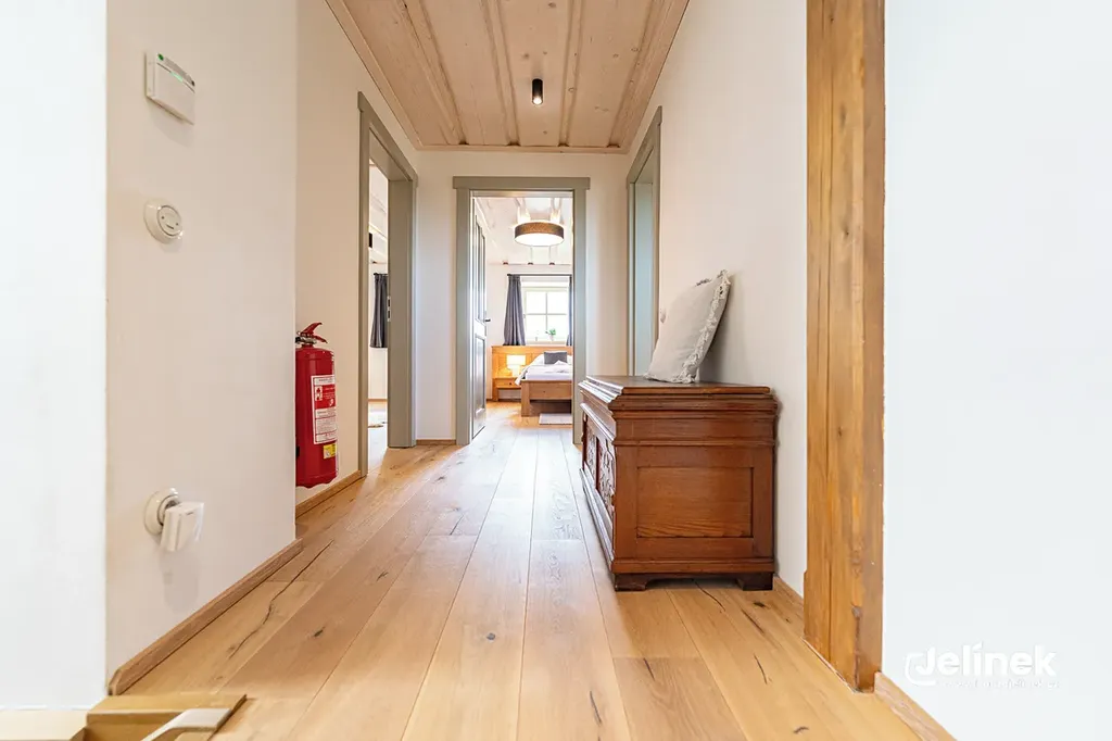 - Vybavení: Kompletní autorský interiér z masivního dřeva, bez nutnosti jakýchkoliv dalších investic pro pokračování pronájmu.