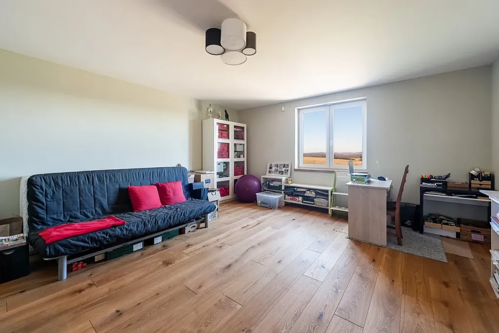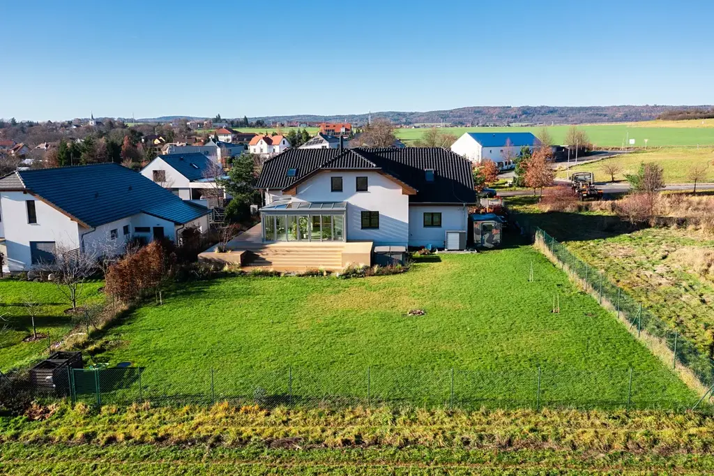 K dispozici jsou veškeré technické sítě, tepelné čerpadlo, podlahové vytápění v celém domě. Na zahradě je k dispozici vířívka, užitkovou vodu zajišťuje retenční nádrž. Dům nevznikl náhodou, ale jako promyšlený domov pro každodenní život, odpočinek i setkávání. Místo, kde rána začínají pohledem do zeleně, dny plynou v absolutním soukromí a večery končí v teple domova, který dává smysl.