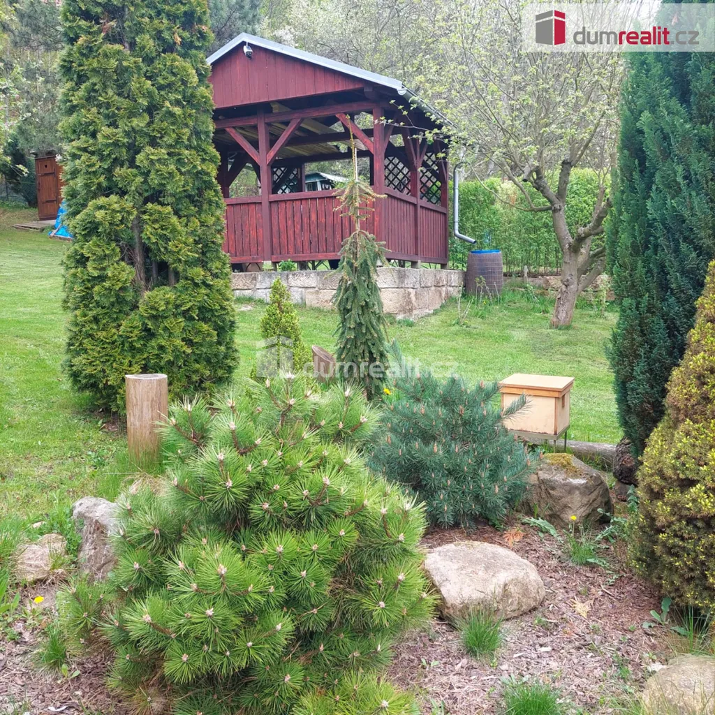 Dumrealit.cz Vám zprostředkuje prodej zahrady v osobním vlastnictví. Samotný pozemek sestává z několika parcel, které tvoří velký celek, jehož součástí jsou dvě stavby s pevnými základy stojící vedle sebe, vedené pod číslem evidenčním. Podle tohoto aktuálního stavu lze vycházet i při určitých přestavbách těchto objektů. Dále na pozemku najdete krásnou dřevěnou pergolu, pěkně vyvedený krb s grilem a udírnou. Taktéž zde nechybí precisně postavená ozdobná zahradní toaleta z tvrdého dřeva. Údržba toalety je jednoduchá a šetrná k přírodě. Na pozemek je přivedena elektřina a zároveň i pitná voda, která ústí do kohoutu vyvedeného vedle pergoly (pitnou vodu dodává společnost Severočeské vodovody a kanalizace, a.s. (SčVK) z vodovodu pro veřejnou potřebu a její užívání je tedy celoroční nezávisle na sezóně). Samozřejmě lze napojit tedy i do objektu. Všechny stavby na pozemku jsou legální a jejich stavbu lze doložit. Zahradu využít dle uvážení - částečně k relaxaci v okrasné části porostu, nebo jako pěstební. Velikost pozemku je zcela dostačující. Majitel má spoluvlastnický podíl na příjezdové cestě a autem lze v pohodě dojet až na pozemek, a zde i parkovat. Zahrada je potěšením pro každého milovníka zahrádkaření. Zde najdete vše. Nicméně nejdůležitější je mít potěšení ze soukromí a příjemného odpočinku. Nemovitostí Vás ráda provedu. Stačí si sjednat prohlídku. Navíc došlo k výraznému snížení ceny, tak vážně neváhejte. Ev. číslo: 655396.