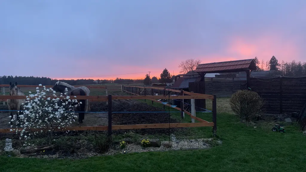 Kolem domu se nachází rozlehlé výběhy. Voda z vlastní studny je rozvedena až do výběhů, stájí, zahrady i přilehlého skleníku.