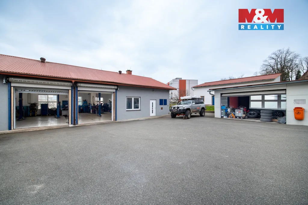 Součástí areálu je parkoviště a zavedená autodílna s kompletním vybavením. Dílna je dlouhodobě provozovaná a připravená k okamžitému pokračování bez nutnosti investic.