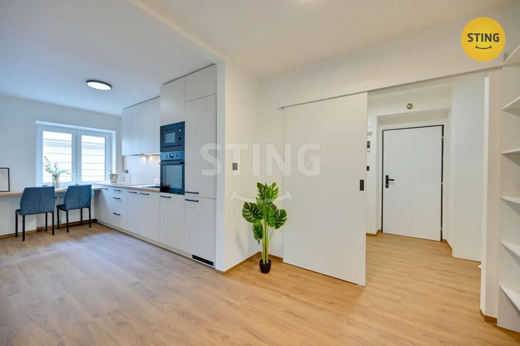 Při modernizaci, která byla dokončena v dubnu 2026, byl kladen důraz na kvalitní materiály i současné trendy v oblasti bydlení. Součástí jsou nová plastová okna, elegantní vinylové podlahy a moderní kuchyňská linka vybavená vestavěnými spotřebiči – indukční varnou deskou, troubou, myčkou na nádobí, digestoří a lednicí s mrazákem. Interiér působí čistě, svěže a je připraven k okamžitému nastěhování bez nutnosti dalších investic.